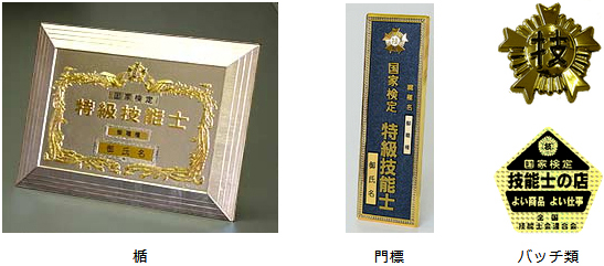 この章記(盾)は、国が公証する技能士であることの誇りと、表示することにより消費者の皆さんに確かな技術と安心・安全を知っていただくために多くの技能士の皆様にご購入いただいております。